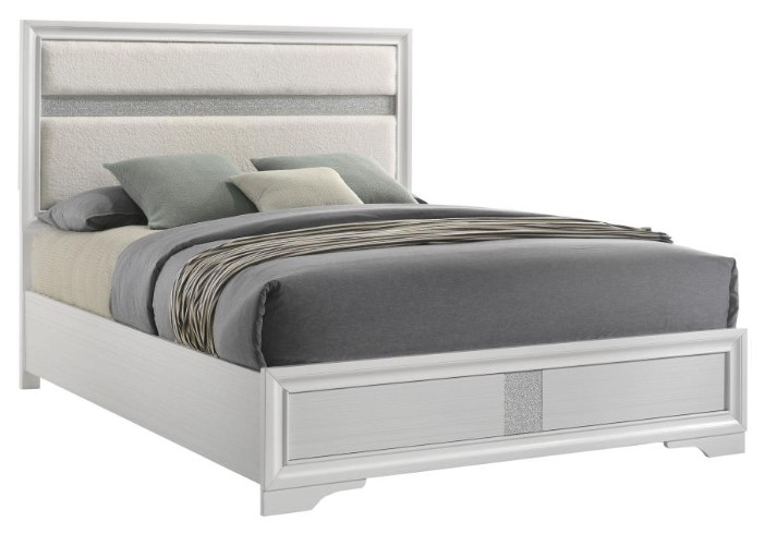 Modern design queen panel bed with upholstered headboard