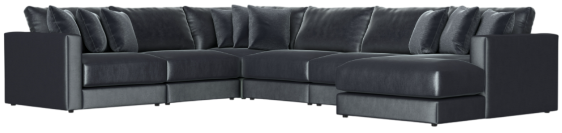 The Jackson Furniture Remington 6-Piece Slate L-Shape Sectional and Chaise provides ample seating with a cozy chaise extension for extra comfort. Its roomy configuration is perfect for family gatherings, offering plush cushioning and durable upholstery for everyday relaxation and long-lasting use.Read More