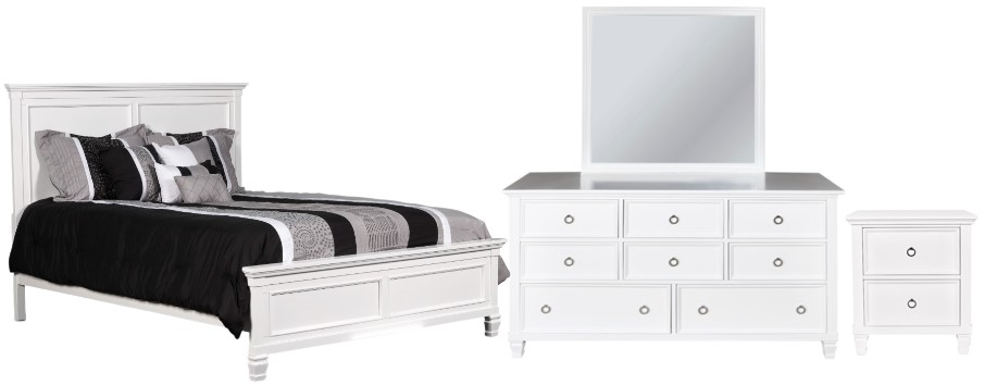 Set includes bed, dresser, mirror, and nightstand