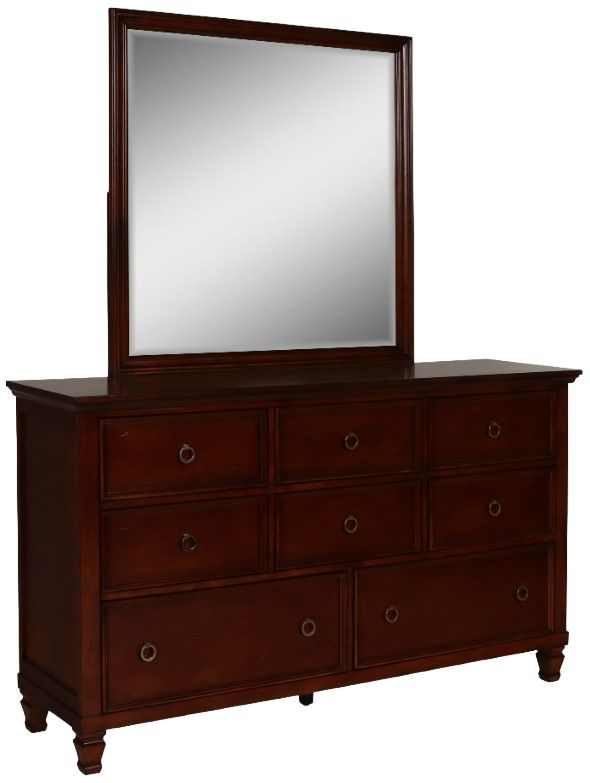 The Tamarack dresser and mirror in brown cherry offers a perfect blend of durability and style. Built with a combination of solid poplar, basswood veneers, and eco-friendly manufactured wood, this dresser ensures strength and long-lasting durability.Read More