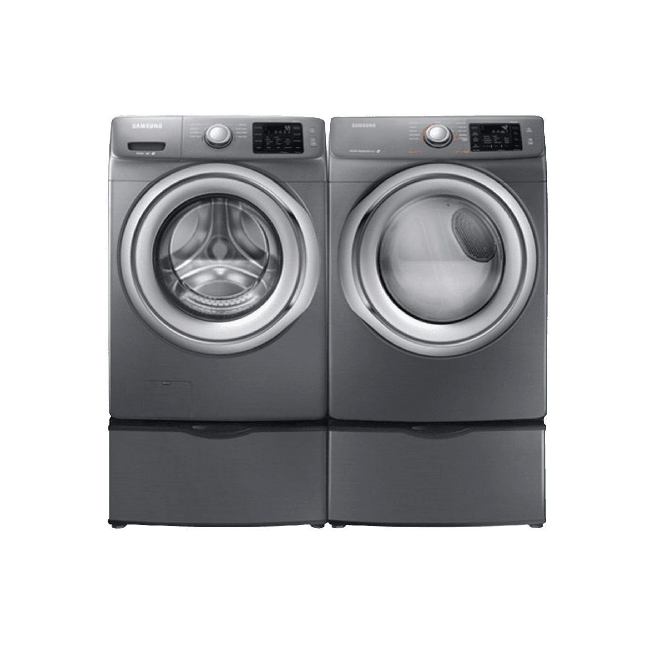Samsung 5200 Series Front Load Laundry Pair-Platinum with a 4.2 cu. ft. capacity front load washer and a 7.5 cu. ft. capacity front load gas dryerRead More